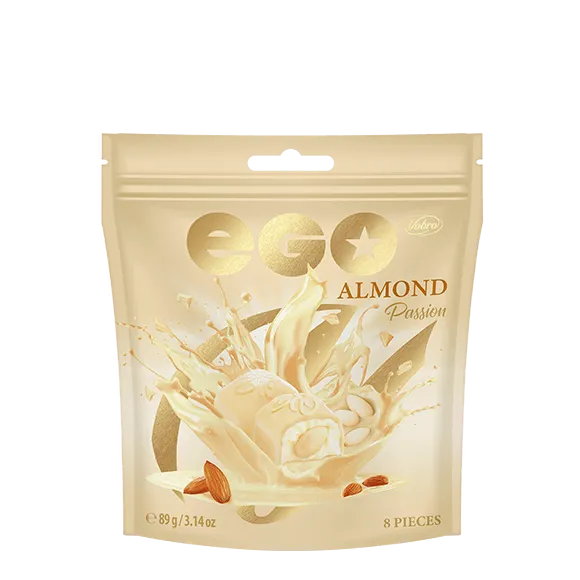 • Otoczka z białego kremu otulająca pełny migdał oraz nadzienie o smaku kokosowym, a także pełen orzech w kremie orzechowym pokryty mleczną czekoladą